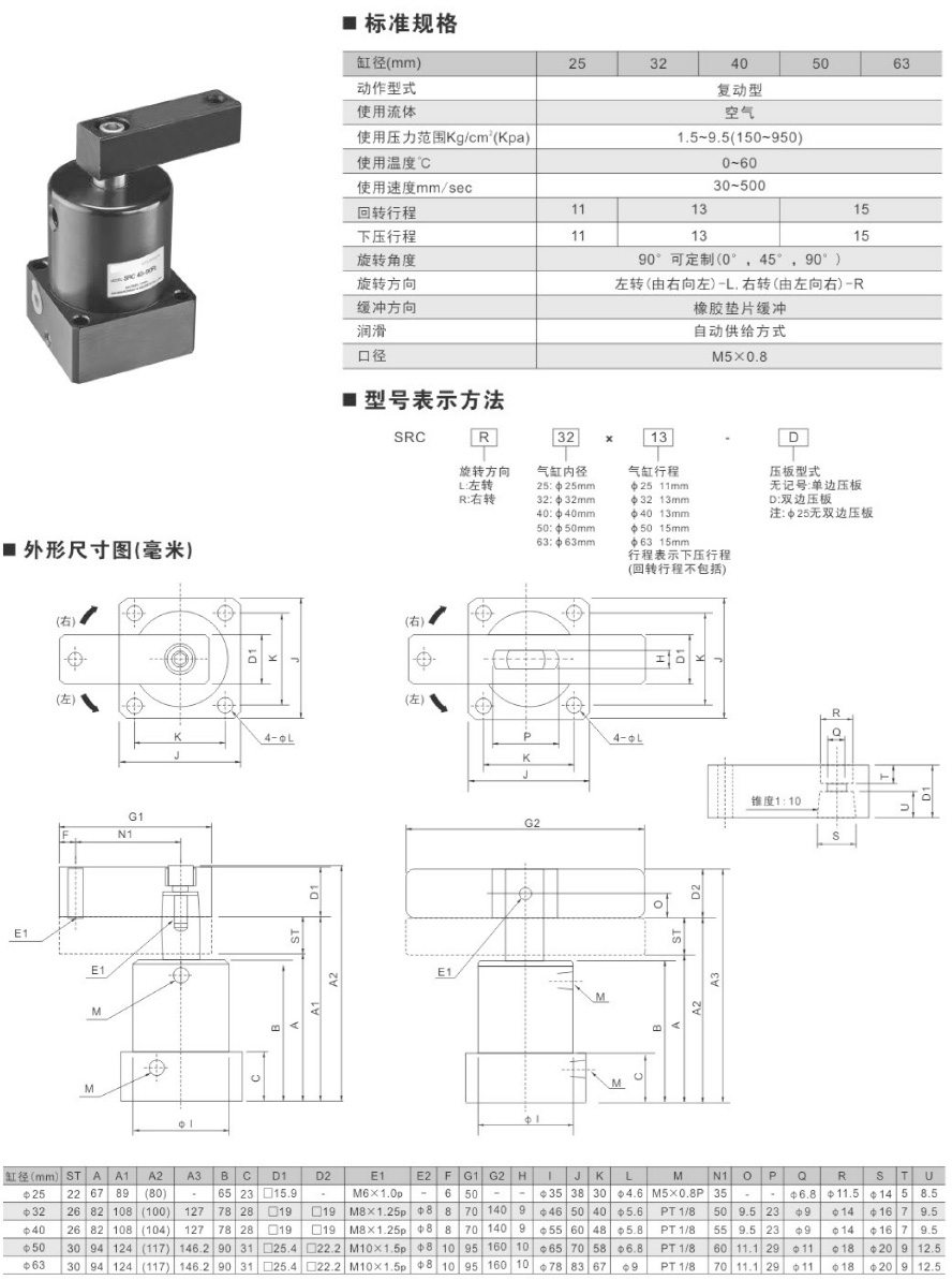 产品名称:SRC系列转角气缸 产品大类类别:气缸系列 产品小类类别:SMC型气缸 电话:0577-62192733 邮箱: 地址:浙江省乐清市柳市镇龙泾西工业区A1栋2号楼